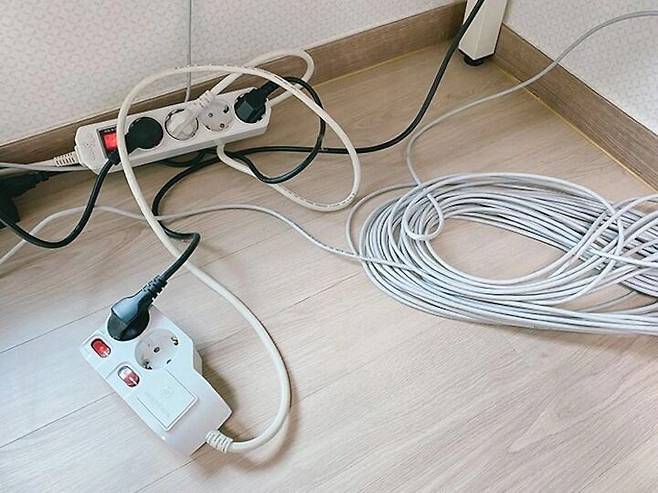 어지러운 전선! 하면 뭐니뭐니해도 멀티탭 전선들이죠.