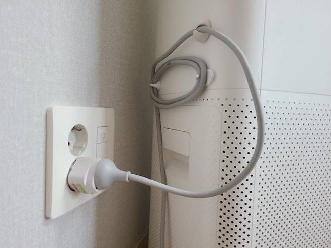 이렇게 위치를 정해 놓고 붙여뒀다가, 사용 안 할 때는 콘센트를 쏙쏙 걸어 주면 끝입니다!