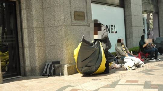 이날 1등으로 도착한 20대 여성 A씨도 텐트를 치고 전날부터 하루를 꼬박 있었다고 합니다. 역시 업체를 통한 알바였는데 그렇게 1등으로 도착하면 하루 수익은 10만원 정도. 이게 진짜로 돈이 되는 건지 A씨는 '줄서기 알바'를 주 5회 정도 하면서 전업으로 삼고 있더군요. 갑자기 업체에서 인터뷰를 막아 더 자세한 얘기는 들을 수 없었습니다. 또 다른 20대 남성 B씨는 줄서는 내내 책을 읽으며 공부를 하더군요. 열심히 사는 고학생 같아 보여서 따뜻한 차라도 대접하고 싶은 생각도 들었습니다. 제 옆에 계셨던 희끗한 노년의 아주머니 C씨는 가끔 2시간씩 줄서는 알바를 하고 3만원 정도를 받아간다고 했습니다. 인터뷰를 마치면서 C씨는 같은 명품 줄서기라도 강남이 더 많이 주는 것 같다고 토로하셨죠.