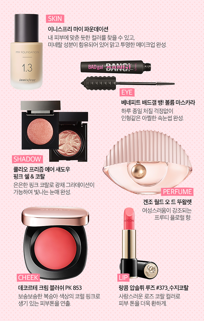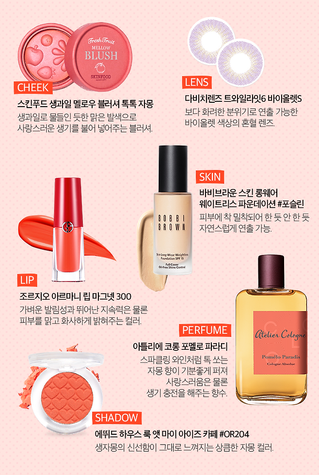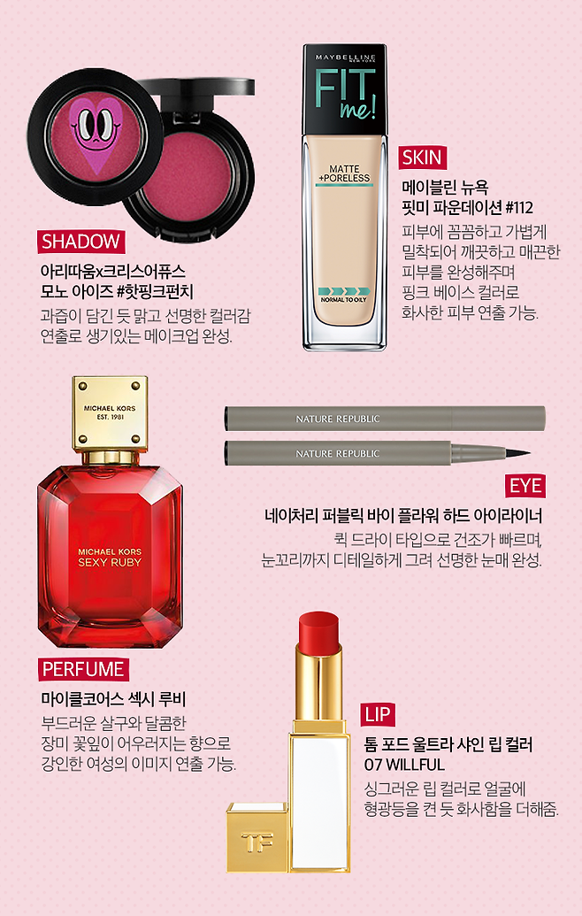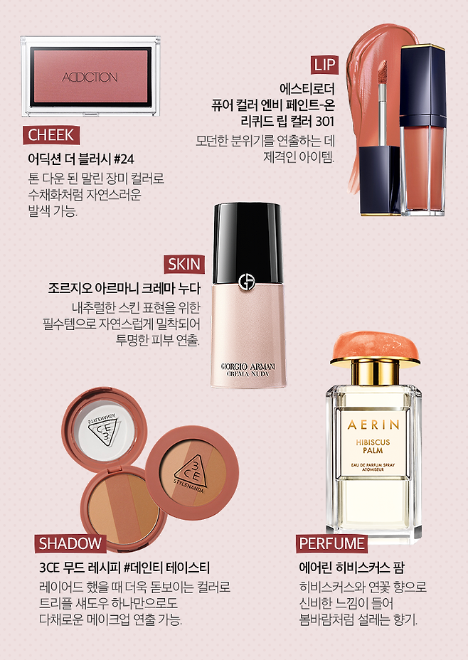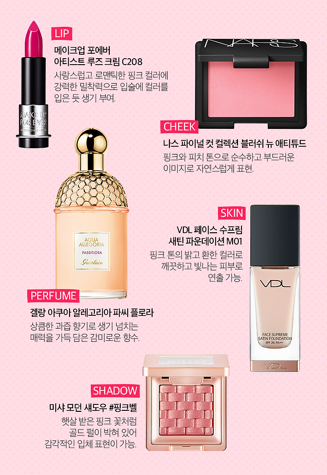 핑크 블러셔로 두 뺨에 홍조를 더해주고,