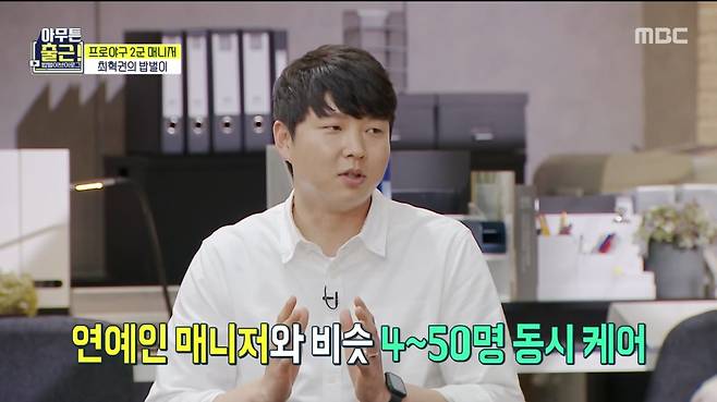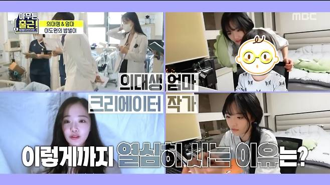 6일 오후 방송된 MBC '아무튼 출근!'에는 의대생부터 엄마까지 1인 4역을 소화하는 이도원과 프로야구 매니저 최혁권의 밥벌이 브이로그가 펼쳐졌다.