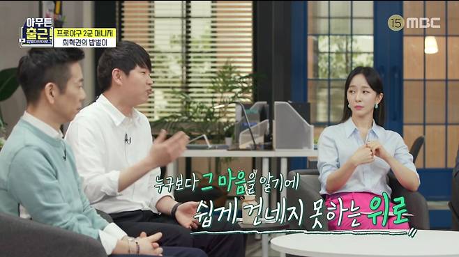 매니저 일을 하며 가장 기쁠 때로 '2군 선수가 1군 호출을 받을 때'를 꼽은 최혁권은 "벅찬 마음에 달려가서 얘기하는데 의외로 선수들은 덤덤하다. 저만 좋아하는 느낌"이라고 말했다. 반대로 방출되는 선수를 픽업할 때 1년 중 힘들다는 그는 "위로가 될 수 없다는 걸 알기에 어떤 말도 건네지 못 한다"고 말했다.