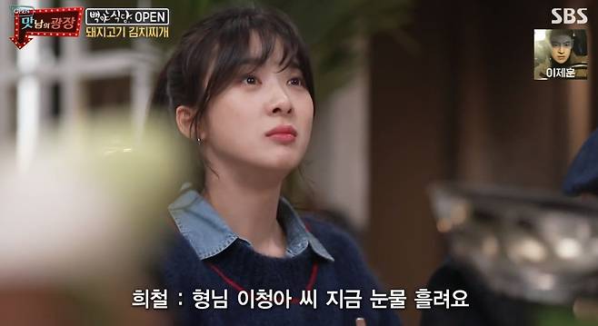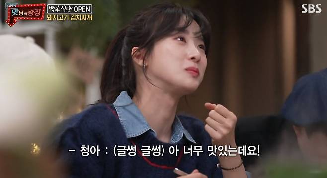 배우 이청아가 백종원 표 김치찌개에 눈물을 글썽였다.