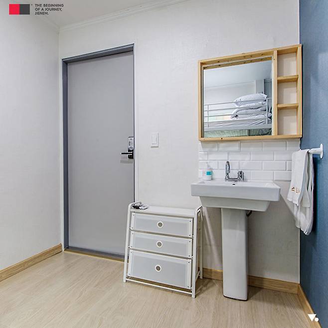 화이트톤의 깔끔한 인테리어, 혼자서는 심심할 수 있는 투숙객을 위해 객실마다 설치된 TV와 세면대 등 혼행족을 위한 세심한 배려가 돋보이는 곳이에요.
