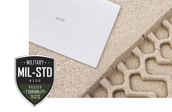 2018년형 LG 그램은 내구성까지 뛰어나다. 보통 초슬림 노트북의 경우 두께를 얇게 만들다 보니 내구성은 상당히 떨어지는 제품들도 있는데, 2018년형 그램은 일명 ‘밀스펙’이라고 부르는 미국 국방성 신뢰성 테스트(MIL-STD; Military Standard)에서 충격과 먼지, 고온, 저온, 진동, 염무, 저압의 7개 항목을 통과했다. 물론 러기드 노트북이 아니기 때문에 혹독한 환경에서 사용하는 것을 권장하거나 보증하지는 않지만, 고가의 노트북을 사용하면서 파손에 대한 걱정이 들 수밖에 없기 때문에 좀 더 편안한 마음으로 사용할 수 있다는 점은 분명 장점이라고 할 수 있다.