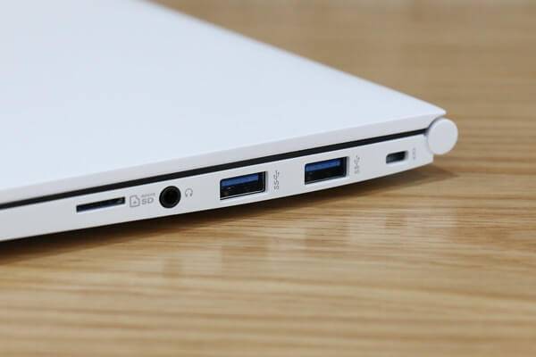 측면의 입출력 포트는 거의 차이가 없다. 왼쪽에는 전원 단자와 표준 USB 포트, HDMI 포트, USB 타입C 포트, 그리고 LED 인디케이터가 있고, 오른쪽에는 마이크로SD 슬롯과 헤드폰 단자, 두 개의 표준 USB 포트가 있고, 끝에는 캔싱턴락 홀이 있다. 표준 USB 포트는 세 개 모두 USB 3.0 사양이기 때문에 빠른 속도로 데이터를 주고받을 수 있다. 이전 모델에서는 두 개의 USB 3.0 포트와 하나의 USB 2.0 포트를 갖추고 있었다.