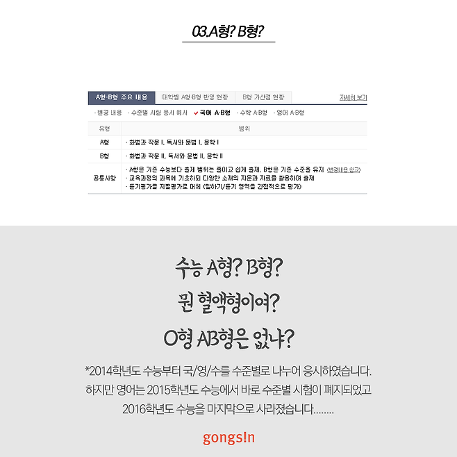 2014학년도 수능부터 도입된 수준별 시험. 하지만 2016학년도 수능까지만 진행되고, 올해 있었던 2017학년도 수능에서는 사라졌습니다~