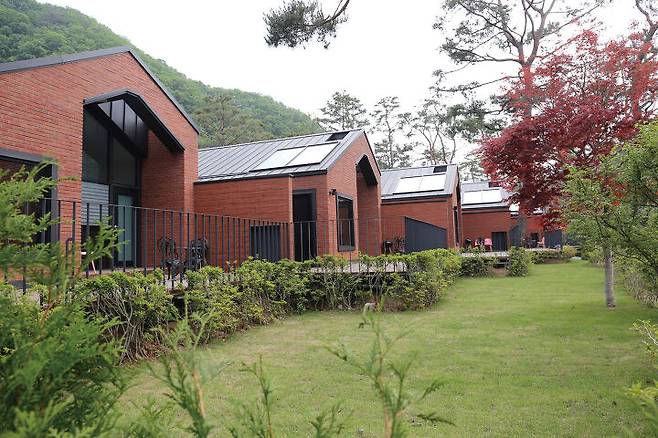 건축물은 대지에서 1m가량 띄워 조경공간과 구분하면서도 약간 높은 위치에서 주변을 관조할 수 있도록 하고, 천변의 수위가 높아질 경우도 대비했다. 입면은 박공지붕을 사용해 강한 방향성을 가지도록 구성하고, 외장재는 벽돌을 사용했다. 펜션은 붉은색 벽돌을 사용하고, 카페와 레스토랑은 흑색 벽돌로 마감했다. 지붕은 짙은 회색 컬러로 주변의 경관과 어울리도록 계획했다.