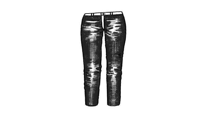 바탕색보다 밝은색으로 지그재그 선을 그려 찢어진 느낌이나 워싱을 표현해주세요. 간단한 방법이지만 청바지의 느낌을 제대로 표현할 수 있답니다.