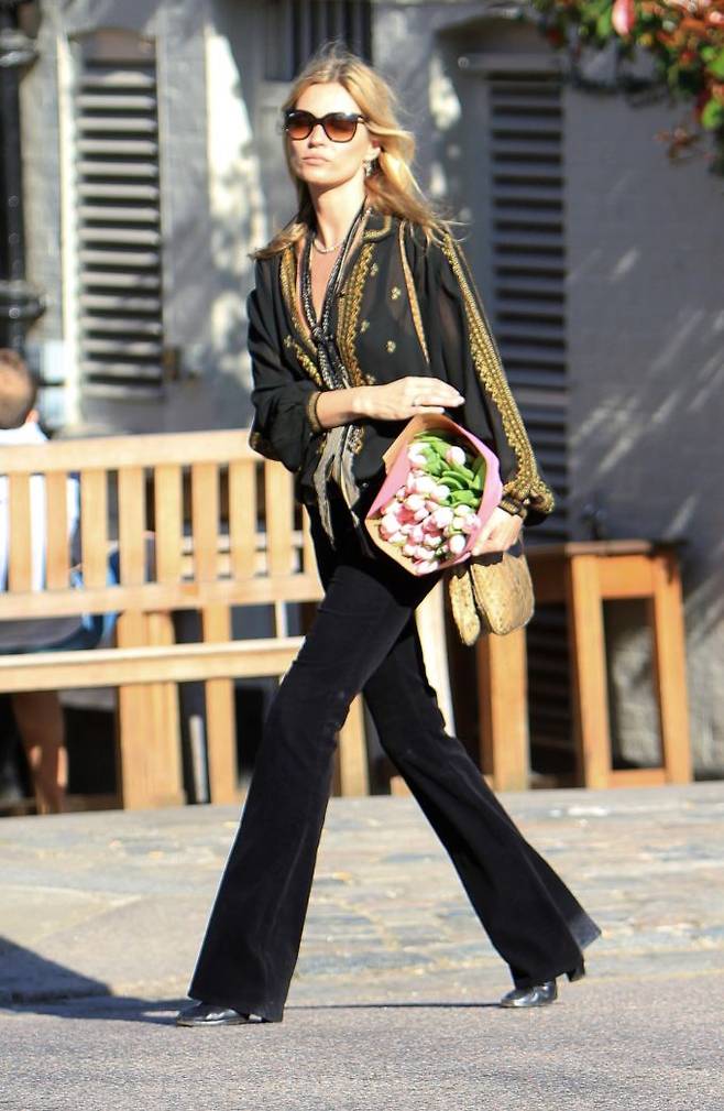그녀는 늘 트렌드에 앞서간다. 케이트 모스가 지난 2012년 봄에 입었던 플레어 팬츠는 그녀가 좋아하는 70년대 느낌이지만 2012년 당시에는 빅 트렌드가 아니었다.