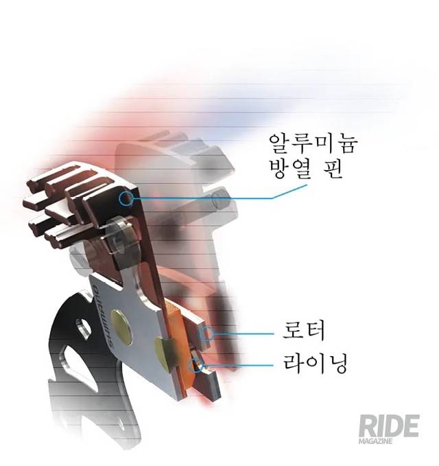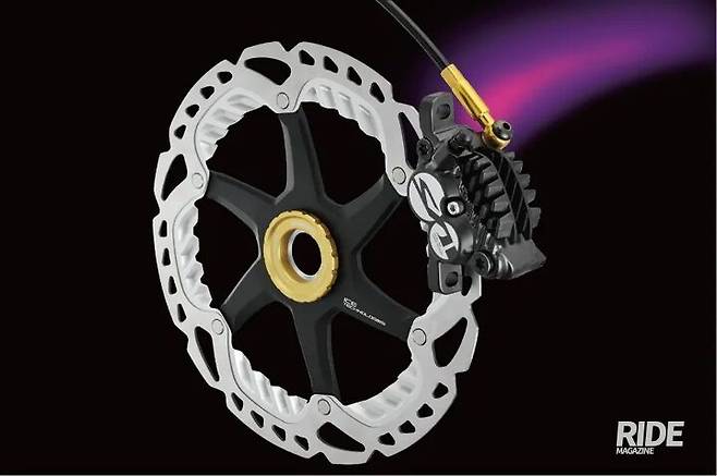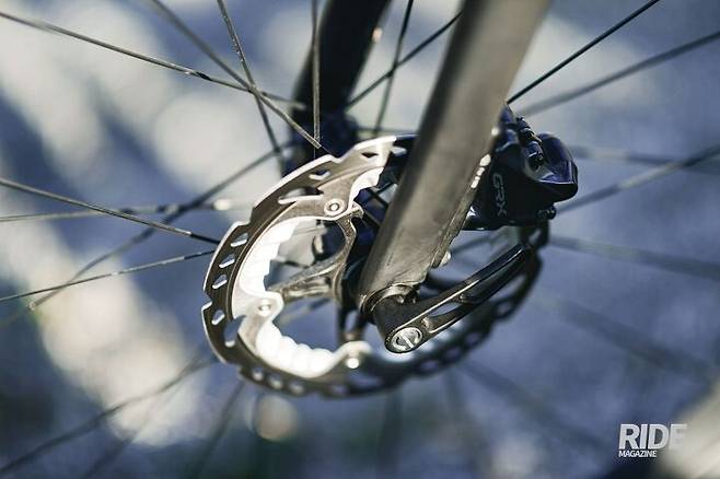 필자는 로드바이크에 있어서 디스크 브레이크 보다 림 브레이크를 선호하는 라이더였다. 그런데 최근 들어 로드바이크에 유압식 디스크 브레이크가 왜 필요한지에 대해 완벽하게 설득이 됐다. 시마노의 유압식 디스크 브레이크는 피스톤이 미네랄 오일 탱크를 눌러 압력을 전달하기 때문에 브레이크 레버를 가볍게 쥐어도 충분히 강력한 제동력을 발휘한다. 그렇기 때문에 누구나 쉽게 사용할 수 있고, 오래 사용해도 피로감이 적기 때문에 장거리 라이딩 또는 레이싱에 적합하다.