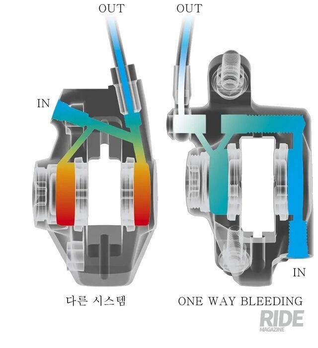 유압식 디스크 브레이크는 수리 및 유지보수가 어렵다는 단점이 있다. 시마노는 이런 단점을 극복하기 위해 원-웨이 블리딩(One Way Bleeding) 기술을 적용했다. 유지보수가 쉽도록 블리딩 니플(Nipple) 위치를 위쪽에서 아래쪽으로 변경한 이 기술은 유압 시스템 내 공기 유입을 막기 위해 단방향의 오일 경로를 유선형으로 설계하여 신속하고 간편한 블리딩 작업을 진행할 수 있도록 했다.