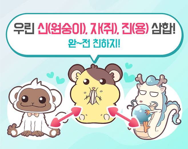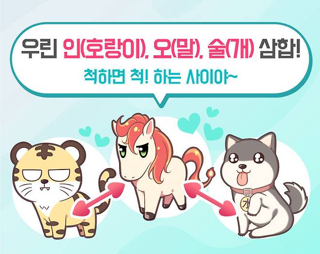 내가 세 가지 동물 중 하나에 해당하고, 상대가 나머지 두 동물 중 하나에 해당한다면 이 삼합에 해당하는 사이랍니다. 일주로 보는 것이 가장 확실하지만, 띠로 맞아도 좋아요.