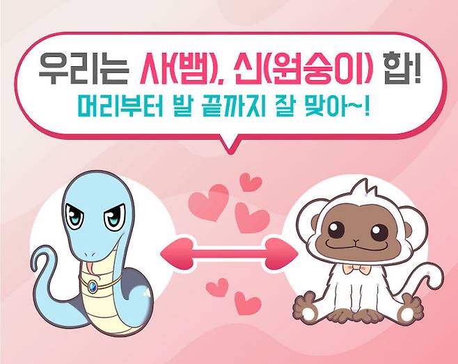 지혜와 현명함의 상징인 뱀일주와 재주와 능력의 화신인 원숭이일주는 어찌 보면 당연할 수밖에 없는 좋은 궁합이에요.