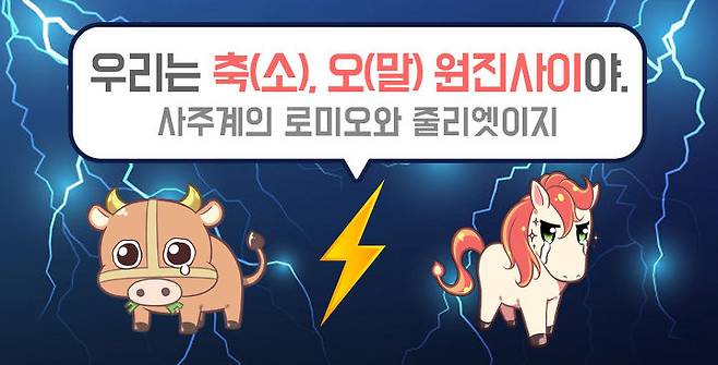 지금까지는 함께하면 좋은 궁합에 대해 알아봤는데요. 그럼 반대로 좋지 않다고 알려져 궁합 보러 가도 좋은 말 듣기 어려운 사주에 대해 알려드리도록 할게요~!