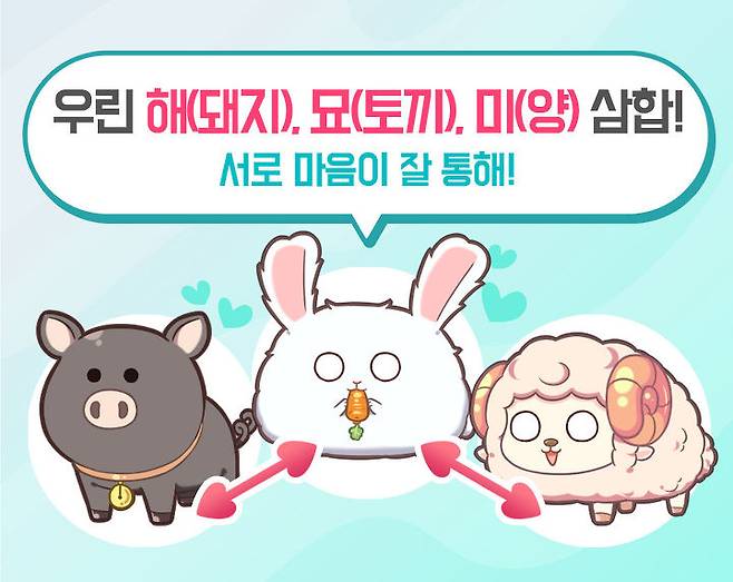 돼지와 토끼, 양 모두 호기심이 많고 생활력이 강한 동물들이지요. 따라서 함께하면 서로 차근차근 발전해나갈 수 있답니다. 좋은 관계를 저축해나가듯 부부 사이도 더욱 돈독해질 수 있겠어요~!