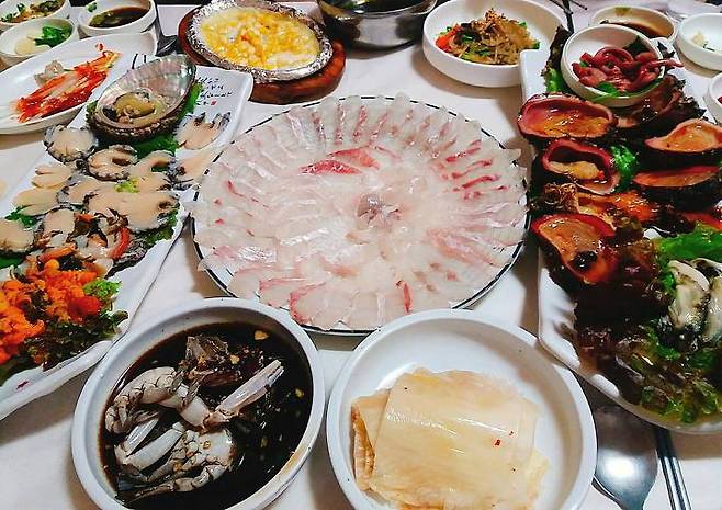해녀와 선주가 직접 운영해 싱싱한 해산물을 저렴하게 맛볼 수 있는 곳, 강성횟집. 싱싱한 활어회를 크고 도톰하게 썰어줘서 쫄깃하게 씹는 맛이 매우 좋아요. 물회 역시 인기 메뉴예요. 새콤달콤한 소스와 함께, 신선한 활어회와 해산물을 함께 먹는 맛은 기가 막히답니다!