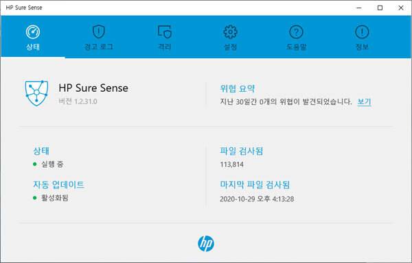 HP 슈어 센서(HP Sure Sense)는 기존 백신 프로그램으로 인식하기 어려운 새로운 멀웨어 변종 공격을 HP만의 딥 러닝 알고리즘과 고급 신경망 기술을 이용해 감지하고 기존에 보고되지 않은 공격으로부터 시스템을 보호한다.