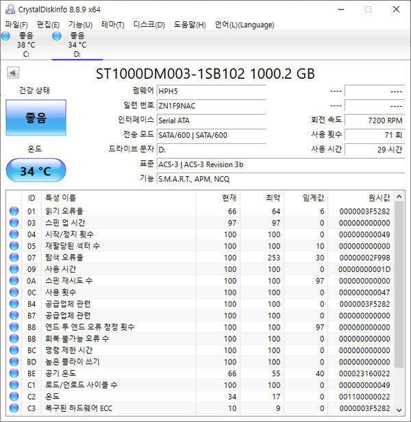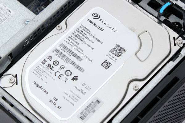 고성능 스토리지 PCIe NVMe M.2 SSD와 함께 일반적으로 사용되는 3.5인치 SATA HDD도 들어갔다. 씨게이트 1TB SATA 데스크탑 HDD인데 모델명(ST1000DM003)으로 보면 리테일로 판매되는 씨게이트 바라쿠다 1TB 7200 RPM과 같은 제품이다. 역시 필요하다면 대용량 SATA HDD로 손쉽게 교체할 수 있다.