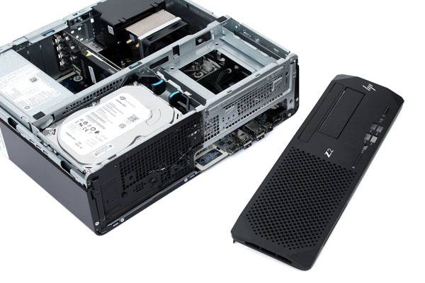 HP Z2 G5 SFF는 맞춤형 소형 폼 팩터로 자신이 원하는 대로 내부 부품을 구성하거나 교체 및 업그레이드를 지원한다. 추가로 케이스 고정 나사 및 도난 방지 장치 등을 설치하지 않았다면 드라이버 같은 별도의 공구 없이 손으로 간편하게 케이스 내부를 개방하여 시스템 상태를 바로 파악할 수 있다. 전면 베젤도 손으로 잡아당기면 쉽게 분리된다.