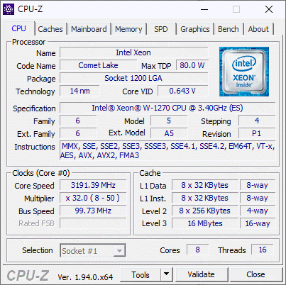 보드나라에 제공된 샘플 제품에는 인텔 제온 W-1270 프로세서가 들어갔는데, 8코어 16스레드 구성에 기본 클럭 3.4GHz, 터보 부스트 최대 5GHz로 동작하며 16MB 인텔 스마트 캐시와 TDP 80W를 지원하는 것으로 나온다.