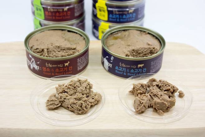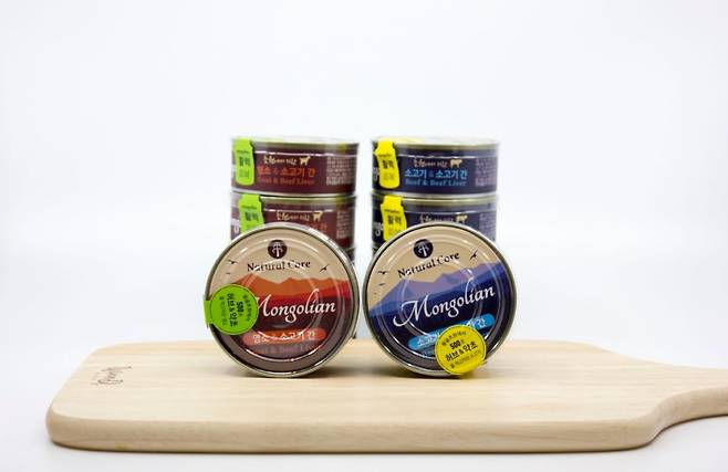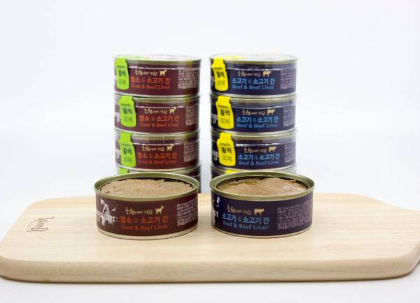 요즘은 좋은 습식캔이 정말 많아요. 닭고기, 쇠고기를 넘어 사람들도 쉽사리 먹기 힘든 제품이 많거든요. 네츄럴코어에서 내놓은 '몽골리안 염소&소간'과 '몽골리안 소고기&소간'도 그중 하나에요. 소간은 우리도 자주 먹는 게 아닌데, 게다가 염소 고기라뇨.