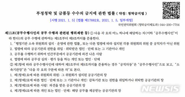 근거는 국민권익위의 '청탁금지법 유권해석 사례집'(2020년 9월판)이다.