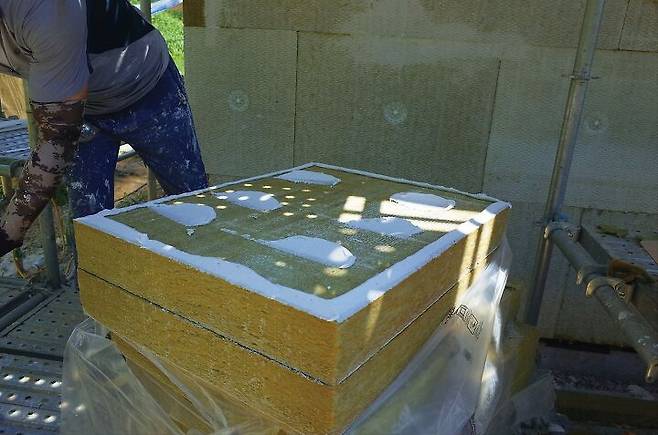 시공 후 유일한 문제 부분은 단열재와 구조체 사이의 틈새, 그리고 단열재와 단열재 사이의 틈새라고 보면 무방하다. 그러나 단열재를 구조체에 접착할 때, 이 틈새를 완전히 없애기란 불가능하다. 그러므로 이 틈새에 집중하기보다 습기가 그 틈새로 들어가지 않도록 접착하는 게 중요하다. 단열재의 중앙과 테두리를 접착 모르타르 또는 접착제로 발라야 한다. 그래야 그 속에 틈새가 생겨도, 습기로 인한 피해를 최소화하고 구조적으로도 견고해지기 때문이다.