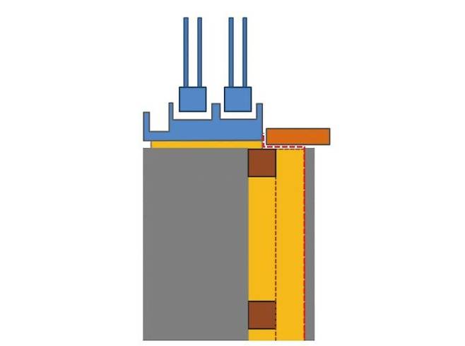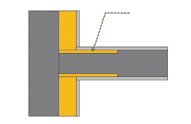 만약 이처럼 된다면 창문을 받치는 철재 브래킷은 최소한의 길이가 돼야 하며, 단열재 길이는 처음부터 브래킷을 고려해 짧게 시공하고, 브래킷 시공 후 주변의 빈 공간은 단열폼으로 틈새 없이 채워야 한다. 이를 위해 단열재 두께가 100㎜를 넘어가기 어렵다.