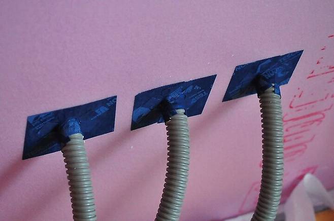 외벽 콘센트 단열 시 가장 주의할 부분이 외벽에 콘센트 박스가 붙어 있는 경우다. 박스 위에 그냥 단열재를 시공하면 박스 내부에 결로가 생겨 누전에 의한 치명적인 화재로 이어질 수 있기 때문이다.
