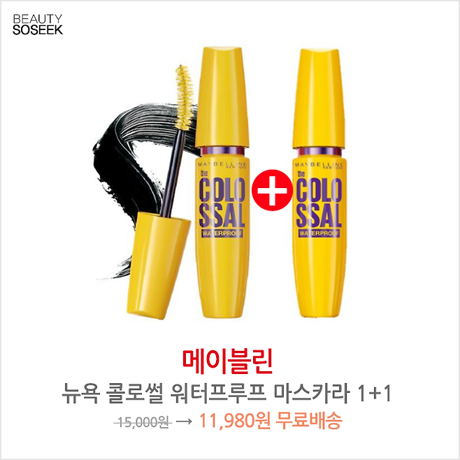 메이블린 뉴욕 콜로썰 워터프루프 마스카라 1+1