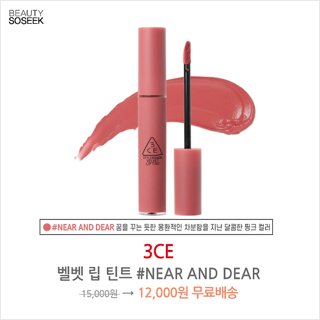 3CE 벨벳 립 틴트 NEAR AND DEAR