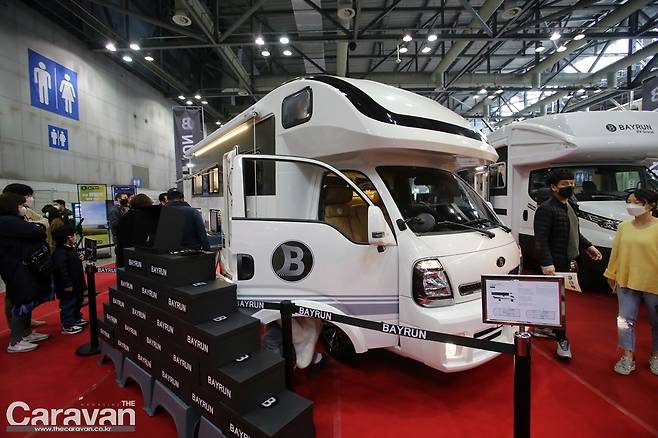 BAYRUN의 B가 관람객들의 눈길을 사로 잡고 있었다. 마치 캠핑카계의 벤틀리가 아니냐는 이야기들이 전해질 정도로 신선한 충격을 던지고 있다. BAYRUN 550 모델의 경우, 5인승에 최적의 구성이지만 최대 6인 취침이 가능하고 가격은 7600만 원(개소세, 부가세 포함)이다.