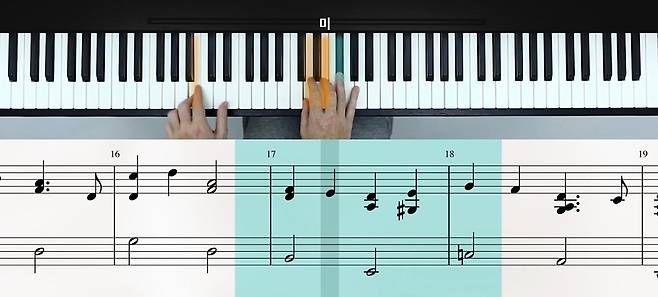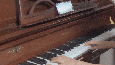 곡을 정하고 앨범 표지를 클릭하면 위에는 연주자의 손이, 아래에는 악보가 동시에 등장한다. 재생 버튼을 누르면 동영상 튜토리얼에서 보이는 연주자의 손 움직임과 악보를 동시에 보면서 연습할 수 있다. 혼자 연습할 때는 몇 번째 손가락으로 건반을 눌러야 하는지 잘 몰라서 손이 꼬이면서 자꾸 틀리게 되고, 결국 흥미를 잃어 포기하기 일쑤였다. 이 앱은 연주자 손의 생생한 움직임을 볼 수 있어서 헷갈리는 부분이 있으면 화면을 보고 얼마든지 올바르게 수정할 수 있어, 초보자에게 큰 도움이 된다.