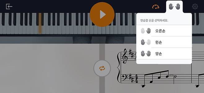 초보자가 바로 양손 연주를 하기는 매우 어렵다. 이에 오른손, 왼손만 따로 연습할 수 있는 기능도 있다. 물론 양손 연주도 가능하다. 우선 한 손으로 충분히 연습한 뒤에 양손으로 넘어가 연주하는 것을 추천한다.