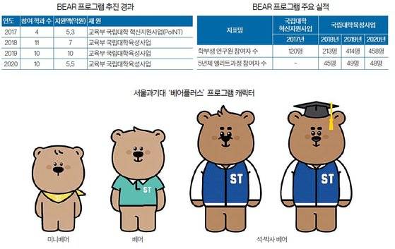 서울과기대는 ‘미니베어’ 및 ‘더 베어’ 프로그램에 각각 1억6000만원, 7억원 등 총 8억6000만원의 예산을 편성했다.