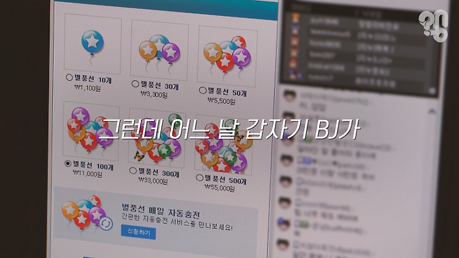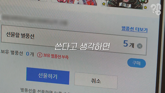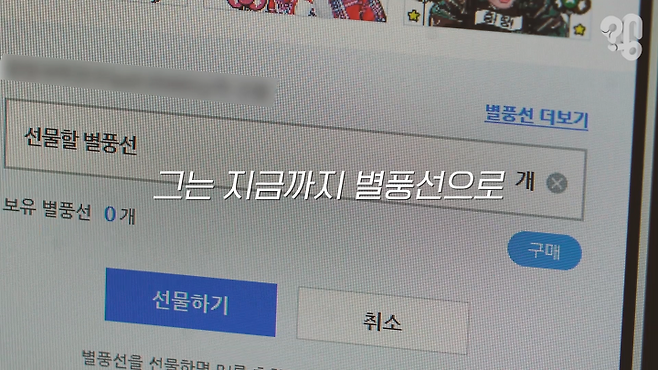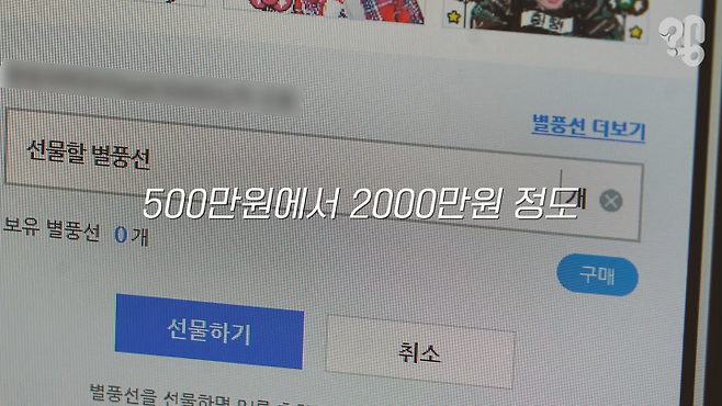 또 다른 아프리카TV 열혈팬 B씨와도 통화했는데 그는 작년 한 해 동안 별풍선 500만 개 정도를 쐈다고 했다.
