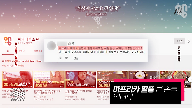 몇백 명이 들어와서 놀더라도 난 내 글만 읽어주길 원하고 BJ도 마찬가지로 별풍선 쏜 사람들의 글만 읽어요.”