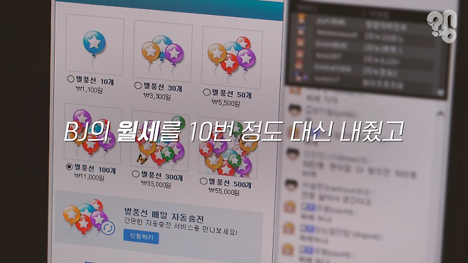 제로 BJ들은 이런 심리를 이용해 별풍선을 더 쏘게 만들려고 ‘연락처 교환’이나 ‘1회 함께 점심 식사’ 등을 보답으로 내걸기도 한다.