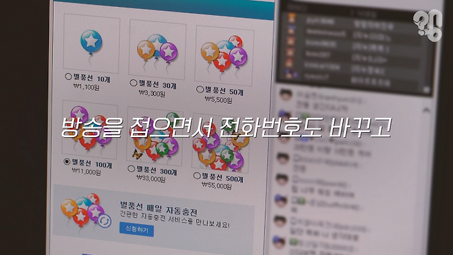 또 다른 아프리카TV 열혈팬 B씨와도 통화했는데 그는 작년 한 해 동안 별풍선 500만 개 정도를 쐈다고 했다.