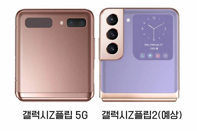 삼성전자의 폴더블폰 ‘갤럭시Z플립2’의 윤곽이 드러나고 있다. 갤럭시Z플립 시리즈는 위아래로 접는 조개 껍데기 모양(클램셸)의 폴더블 스마트폰이다. 올해 출시되는 모델은 1.1인치에 불과했던 커버 디스플레이 크기가 2배 가까이 커지는 게 가장 큰 차이점이다. 삼성전자는 지난해 2월 롱텀에볼루션(LTE) 모델을 출시한 뒤 9월 5세대 이동통신(5G) 지원 모델을 출시했다.