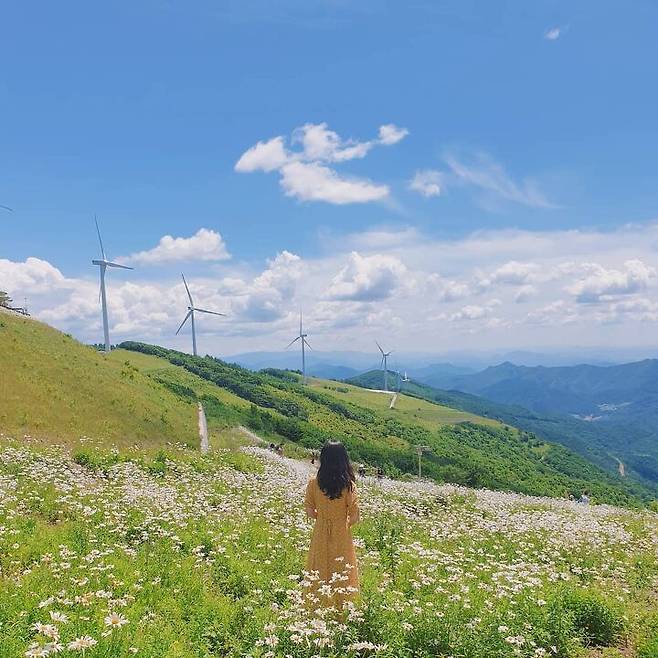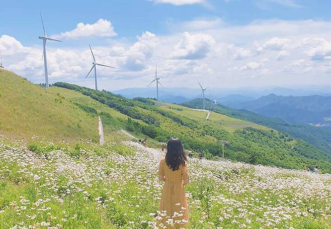 산을 오르는 동안 북유럽을 연상케하는 하얀 자작나무 숲을 만날 수 있어요. 한국의 알프스로 불리는 곳답게 봄철에는 산 능선에 가득 핀 데이지 꽃이 마치 눈 내린듯한 장관을 만들어내죠.