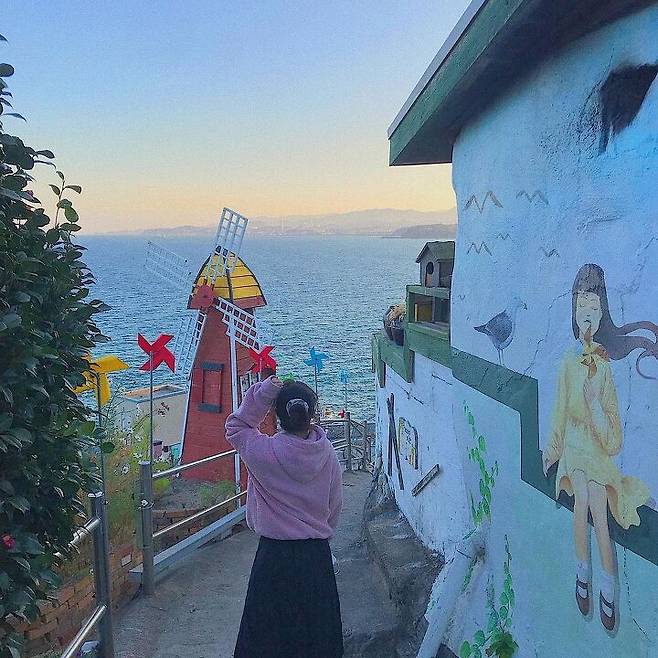 비탈길로 이어진 논골담길은 어느 각도에서든 탁 트인 바다를 내려다볼 수 있어 마을 전체가 포토존으로 불립니다. 마을의 가장 높은 언덕에는 오래된 등대와 먼바다를 볼 수 있는 전망대가 설치되어 있으니 꼭 들러보시길 바라요.