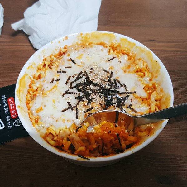 이 세상에 불닭볶음면이 없었으면 어쩔뻔했는가. 수많은 편의점 레시피를 탄생시킨 불닭볶음면을 활용한 레시피가 또 탄생했다. 불닭볶음면에 밥과 치즈를 넣어 한 끼 식사로 훌륭한 ‘불닭리조또’. 레시파는 간단하다. 불닭볶음면에 밥과 부드러운 스트링 치즈를 올려주면 된다. 조리예에 따라 불달볶음면을 준비한다. 이때 깨와 김가루는 남겨둔다. 햇반은 전자레인지에 데운다. 준비한 불닭볶음면에 햇반을 넣고 마구 섞는다. 그 위에 스트링 치즈를 올리고 전자레인지에 1분가 데워준다. 녹은 치즈 위에 남겨둔 깨와 김가루를 뿌려 완성한다.