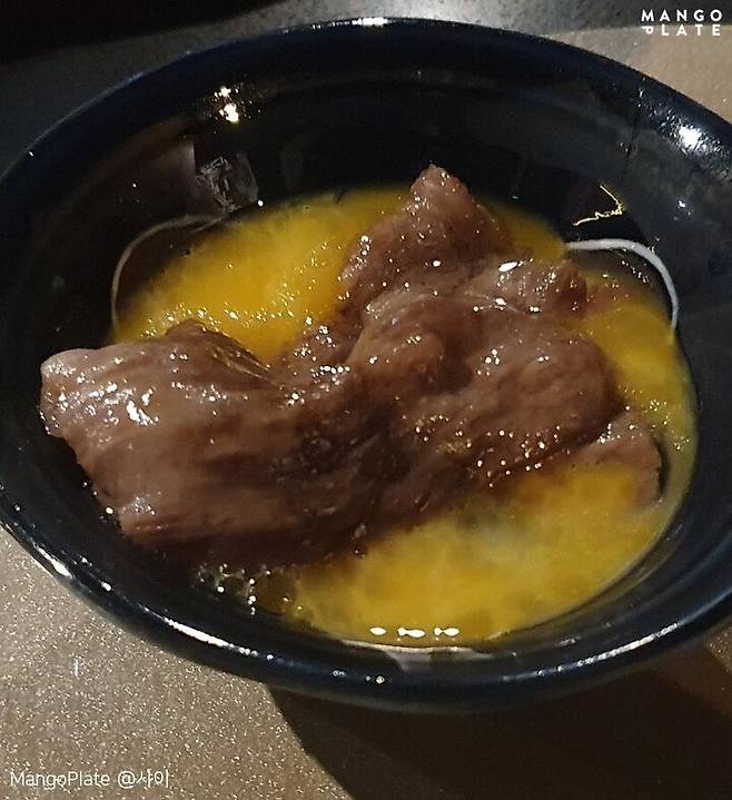 키겐이 특별한 점은 바로 1++ BMS NO.9up 최고급 한우를 사용한다는 점인데요. 어디서도 경험할 수 없는 최고급 한우라니, 말해 뭐하겠어요? 맛있게 구워진 고기는 '백봉오골계란' 소스에 담아주시는데요. 고기를 촉촉이 계란에 적셔 한 입 먹으면 환상의 조화를 자랑한답니다.