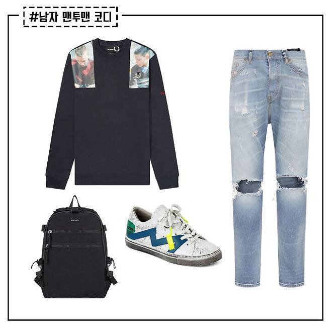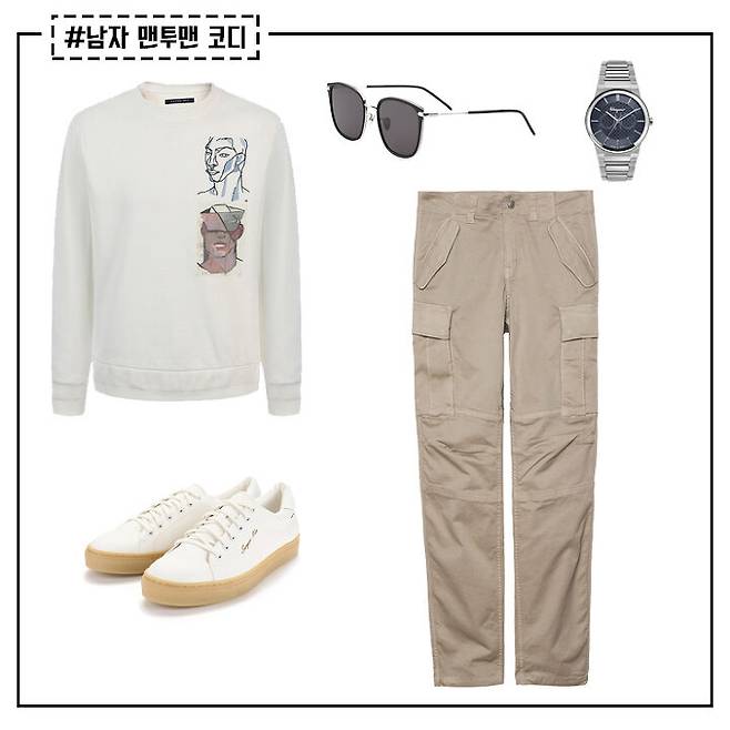 먼저 톤다운된 컬러의 맨투맨 코디야!