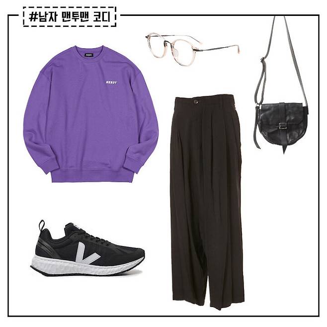 보라보라한 맨투맨과 와이드한 핏의 팬츠를 매치한다면