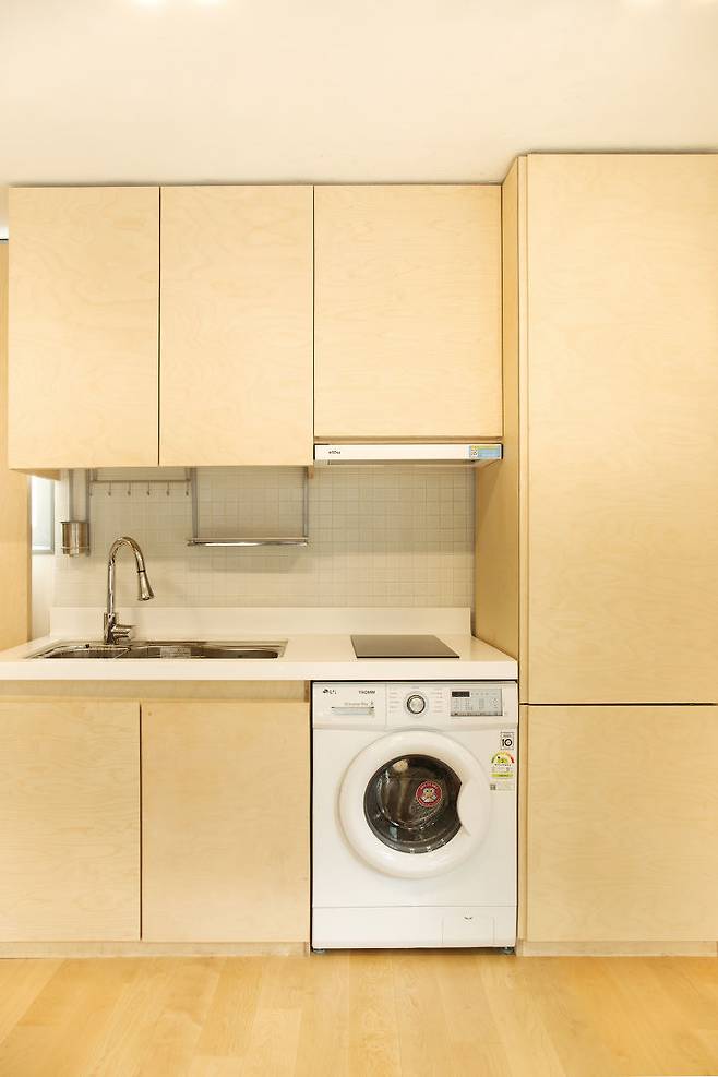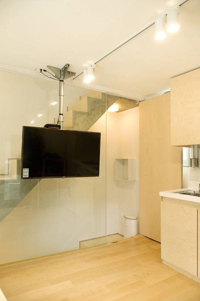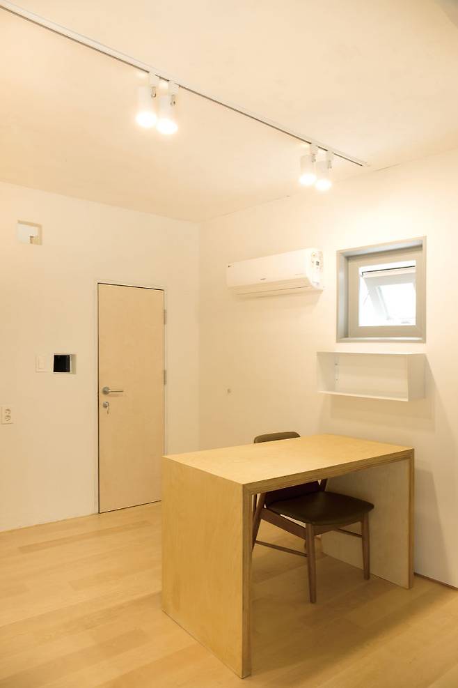 연희동 꼬꼬마주택은 연면적이 15평이지만, 1층은 2인용 디자인 작업실, 2층은 식당/주방·거실, 3층은 침실 등 건축주가 요구한 모든 공간을 갖췄다. 더욱이 2층에 1.5평의 작은 테라스도 있다. 법정 허용 면적과 높이 한계 그리고 시공비의 한계를 극복한 스마트한 꼬꼬마주택이다.