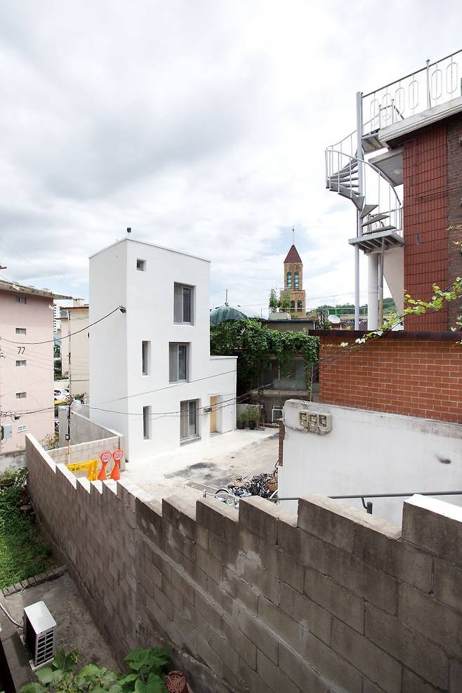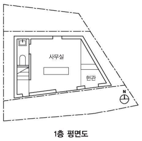서울 서대문구 연희동 언덕의 작은 땅을 구입한 출판 디자이너인 건축주는 침실이 하나이면서 1층은 2명이 작업실로 사용할 주택을 원했다.