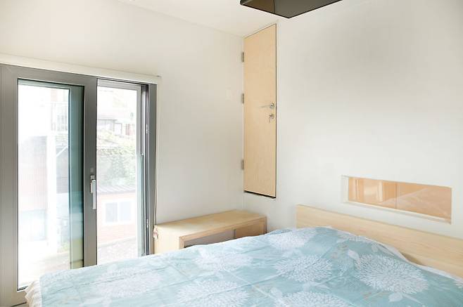 연희동 꼬꼬마주택을 계획하면서 단열에 특히 신경을 썼다. 법적인 외단열 두께뿐만 아니라 건물 내벽에도 단열재를 시공하고 석고보드 2겹을 부착했다. 개구부도 단열을 고려해 모든 창호는 시스템창호를, 현관문은 철재와 목재 2중문을 적용했다.